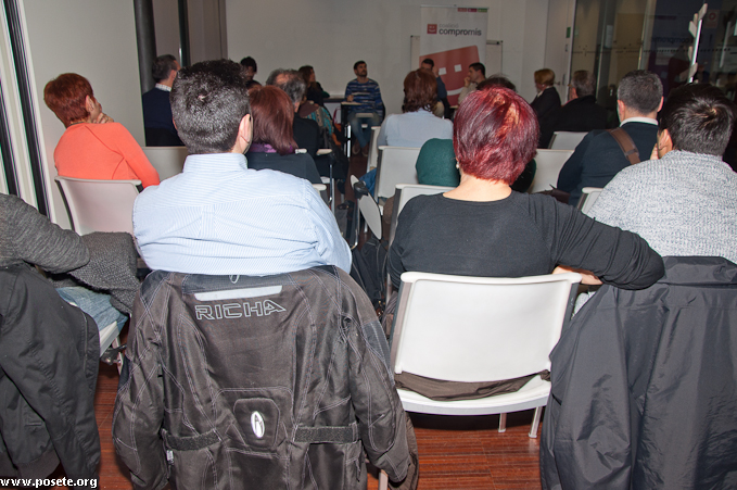 El Jueves 15 de Enero tuvo lugar en el CCOctubre un acto de campaña de Compromís para la elección de concejales del Ayuntamiento. El formato fue interesante. Los candidatos se dividieron en tres grupos de seis candidatos. Había tres salas. En cada sala se tocaban unos temas concretos. Y los candidatos iban pasando de una sala a otra, así tocaban todos los temas. Yo me quedé en la sala de Cultura y Asuntos sociales. Y ahí fui haciendo fotos a todos los aspirantes a ediles conforme iban pasando. Ahí van las fotos.