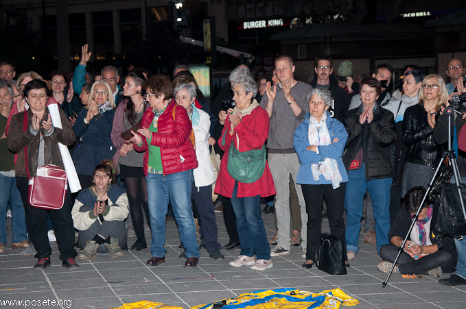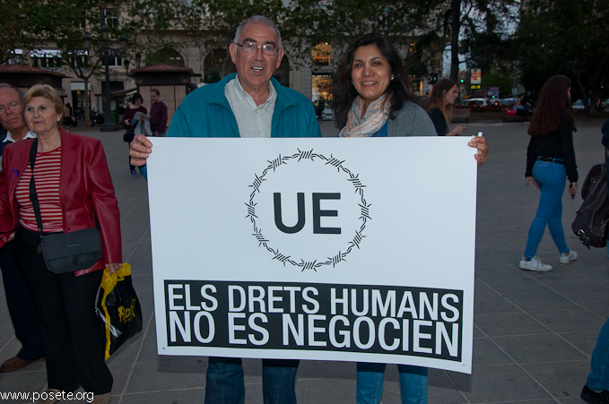 El pasado Viernes 22 de Abril nos reunimos unos trescientos activistas en la Plaza del 15M. El motivo era protestar contra el tratado entre la UE y Turquía. Con ese acuerdo remitimos los refugiados a Turquía, que, a cambio, recibe dinero. NO nos parece bien. Europa debería recibir a los migrantes con los brazos abiertos, porque sufren una catástrofe humanitaria. Y habría que habilitar rutas seguras para que lleguen a Europa, y no se jueguen la vida en travesías marinas peligrosas.