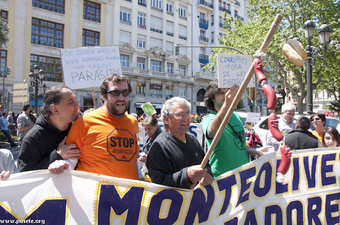 Nos juntamos un buen número de colectivos: sindicatos, 15M, iaioflautas, contra los Cie´s, inmigrantes, republicanos, etc. Cada uno de los colectivos se expresaba a su manera.