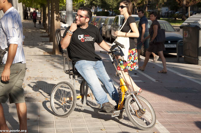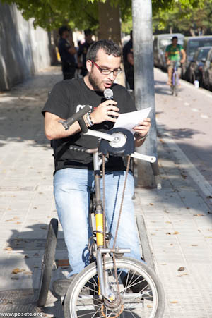 El de la bici es Xavi. Es el que lleva la voz cantant en las concentraciones. Dirige el acto, y nos anima a cantar consignas. Lo que a él le sale de forma natural solo lo puede hacer él. Yo, por ejemplo, soy demasiado tímido para hacer lo que él hace muy bien. ¡¡Un H U R R A por Xavi!!