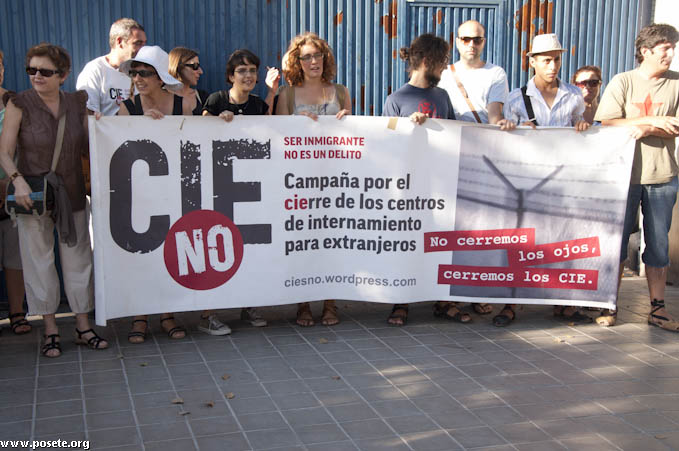 El pasado martes día 30 de Julio nos reunimos, como todos los últimos martes del mes, frente al CIE de Zapadores para pedir mejor trato para los inmigrantes allí encerrados, y para pedir su cierre. No fuimos muchos, pero nos hicimos oír.